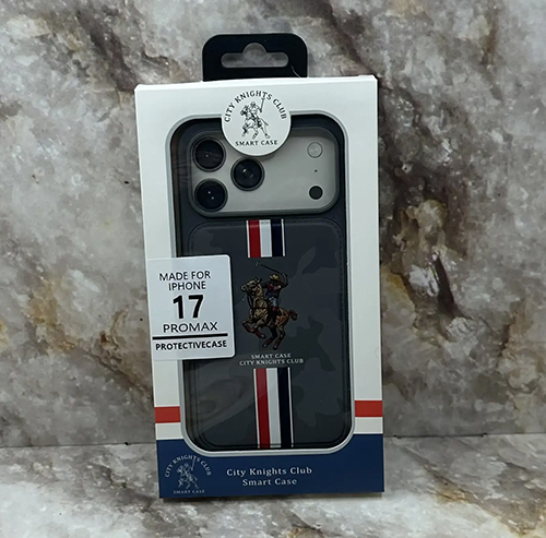 Задняя крышка Iphone 17 Polo City Knights Club, под кожу, с MagSafe, три полосы, всадник на лошади, синяя
