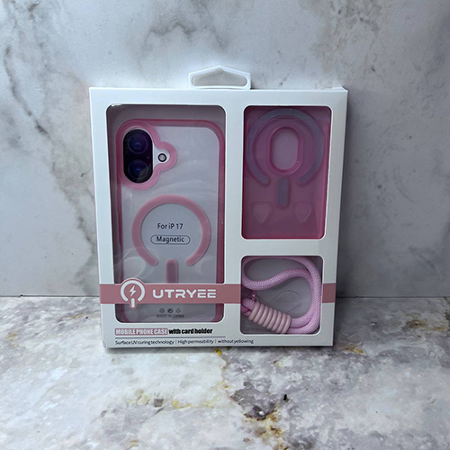 Задняя крыша Iphone 17 Pro с MagSafe + картхолдером и шнурком, розовая