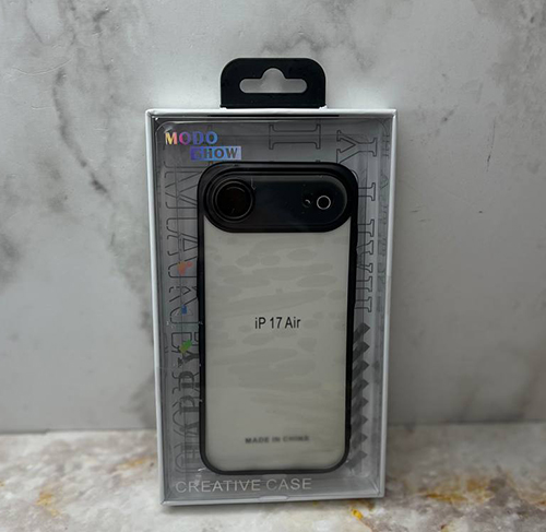 Задняя крышка Iphone 17 Pro MODO SHOW матово-прозрачная, цветная оконтовка камеры, черная