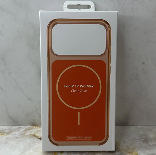 Задняя крышка Iphone 17 Pro Clear case с MagSafe + анимация, открытый низ, в коробке, оранжевая