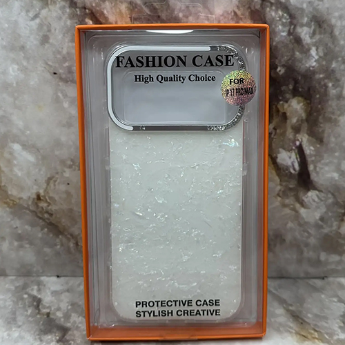 Задняя крышка Iphone 17 Pro FASHION CASE под мрамор, металл. окантовка камеры со стразами, белая
