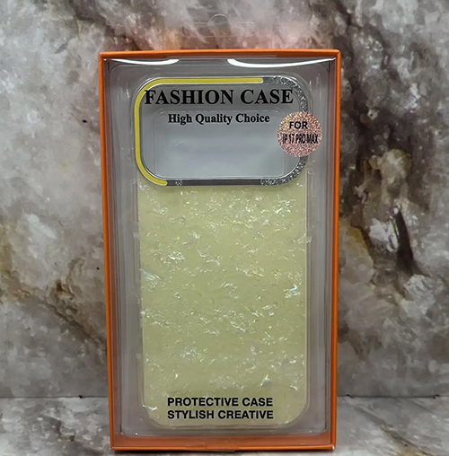 Задняя крышка Iphone 17 Pro FASHION CASE под мрамор, металл. окантовка камеры со стразами, желтая