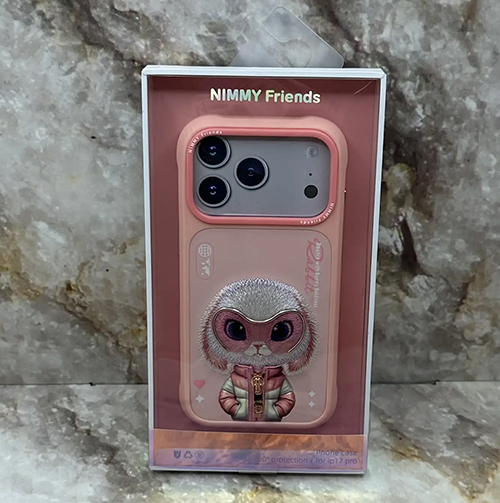 Задняя крышка Nimmy Iphone 17 Pro матовая, с вышивкой, зайка в куртке с замочком, розовая