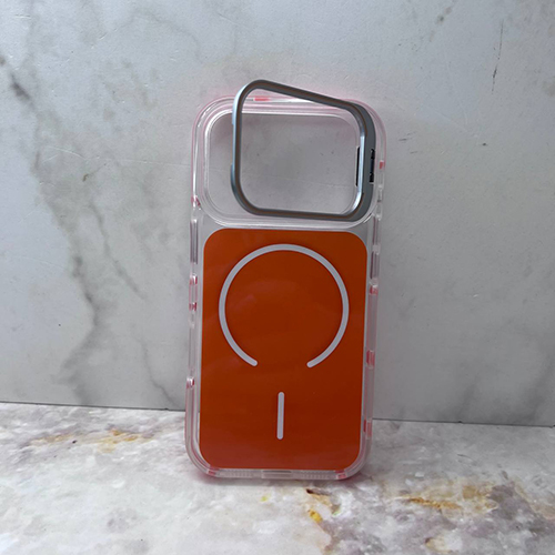 Задняя крышка Iphone 17 pro max прозрачная, камера-подставка, с MagSafe, в тех.паке. оранжевая