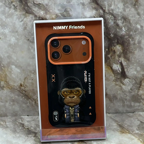 Задняя крышка Nimmy Iphone 17 Pro Max матовая, с вышивкой, обезьяна в куртке с замочком, черная