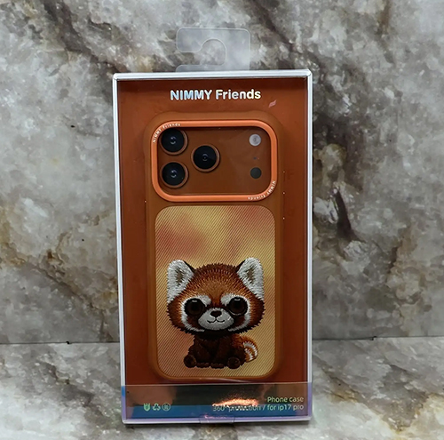 Задняя крышка Nimmy Iphone 17 Pro Max матовая, с вышивкой, енот, оранжевая