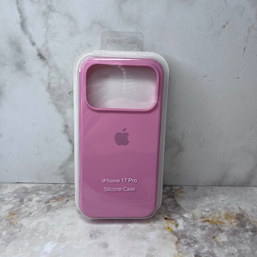 Силиконовый чехол Iphone 17 Silicone Case без защиты камеры, с логотипом, в блистере, розовый