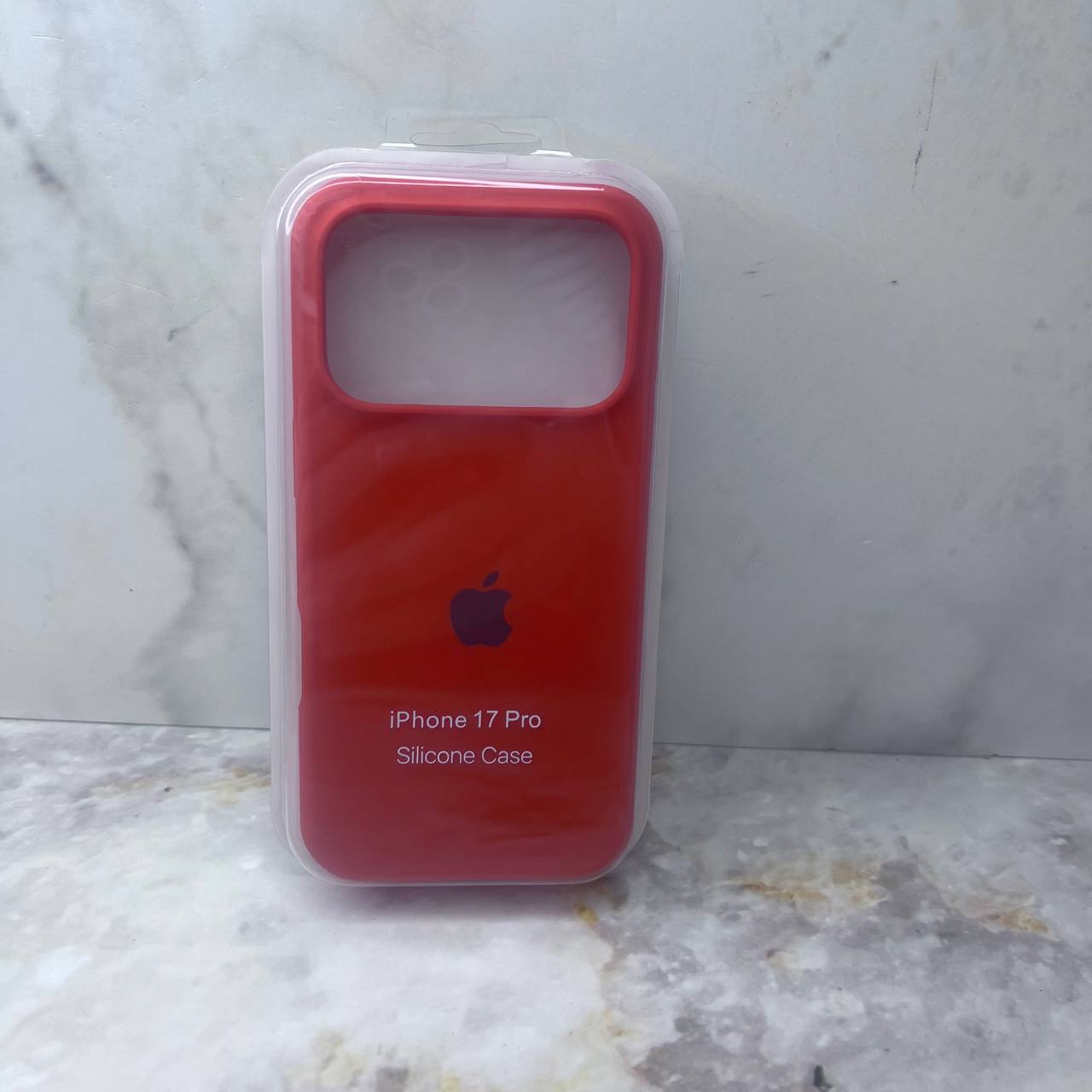 Силиконовый чехол Iphone 17 Silicone Case без защиты камеры, с логотипом, в блистере, красный