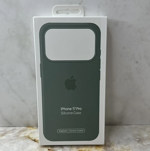 Силиконовый чехол Iphone 17 Silicone Case, с защитой камеры, с логотипом, в блистере, хаки