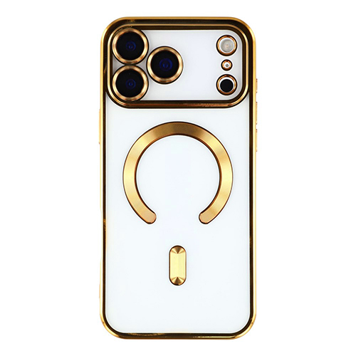 Силиконовый чехол Iphone 17 Pro прозрачный в сеточку, с защитой камеры, magsafe, глянцевый борт, в блистере, золото