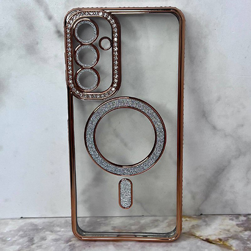 Силиконовый чехол Iphone 17 Pro Max прозрачный, цветной борт со стразами, MagSafe из блесток, золотой