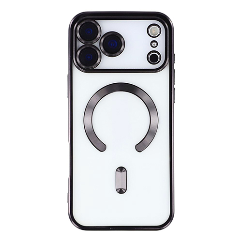 Силиконовый чехол iphone 17 Pro Max прозрачный в сеточку, с защитой камеры, magsafe, глянцевый борт, в блистере, черный