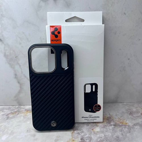Силиконовый чехол Iphone 17 Pro Max SPIGEN под карбон с MagSafe, в коробке, черный