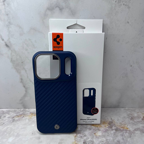 Силиконовый чехол Iphone 17 Pro Max SPIGEN под карбон с MagSafe, в коробке, синий