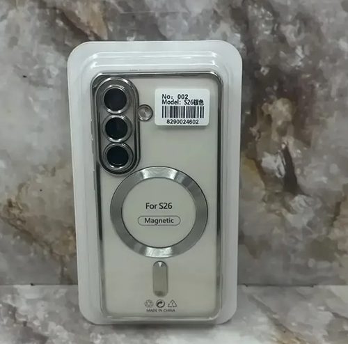 Силиконовый чехол Samsung Galaxy S26 Ultra прозрачный в сеточку, с защитой камеры, magsafe, глянцевый борт, в блистере, серебряный 8290024602