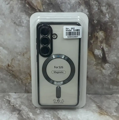 Силиконовый чехол Samsung Galaxy S26 Ultra прозрачный в сеточку, с защитой камеры, magsafe, глянцевый борт, в блистере, черный 8290024601