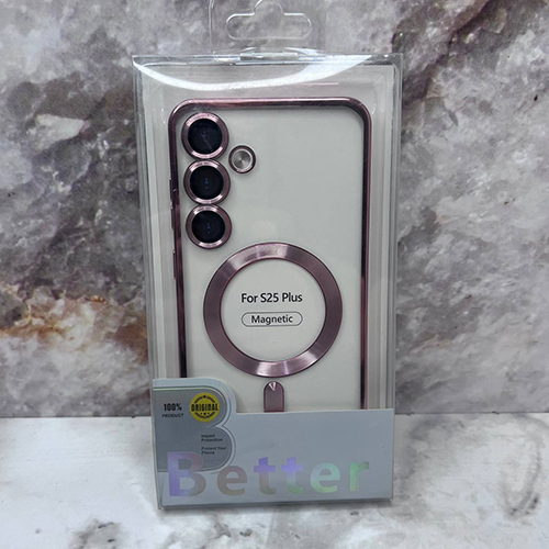 Силиконовый чехол Better Samsung Galaxy S26 прозрачный в сеточку, с защитой камеры, magsafe, глянцевый борт, в упаковке, розовый