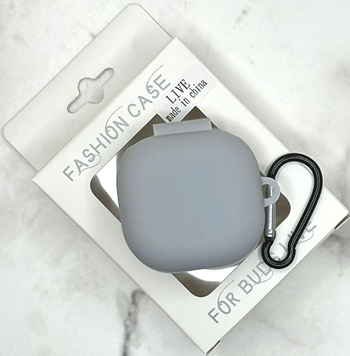 Силиконовый чехол для Samsung Galaxy Buds Live Fashion Case тонкий, с карабином, в упаковке, серый