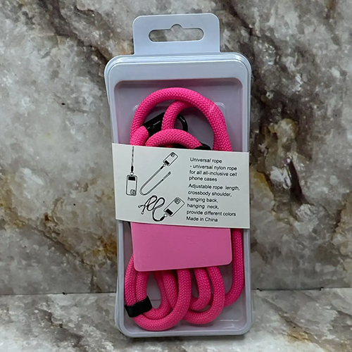 Универсальный тканевый шнурок для телефона на шею, с карабином, в блистере, ярко-розовый