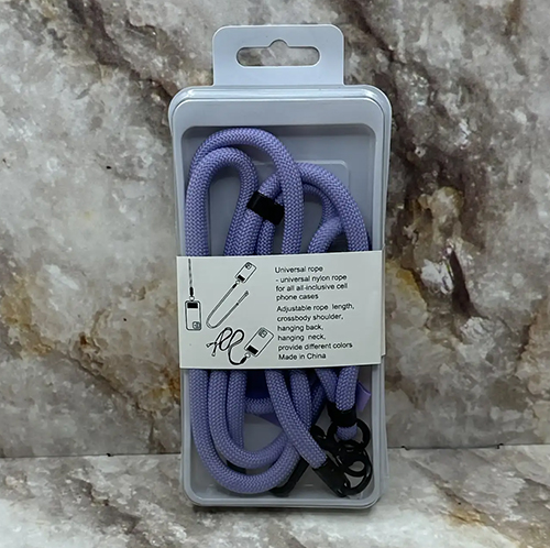 Универсальный тканевый шнурок для телефона на шею, с карабином, в блистере, сиреневый