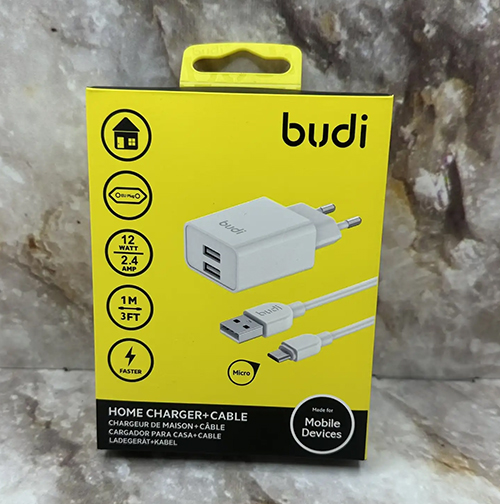 Блок питания Budi 2 USB, 12W 2.4A, кабель USB для Micro USB, 1M, (AC356EMW) белый