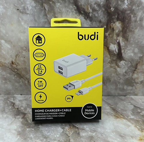 Блок питания Budi 2 USB, 12W 2.4A, кабель USB для Lightning, 1M, (AC356ELW) белый