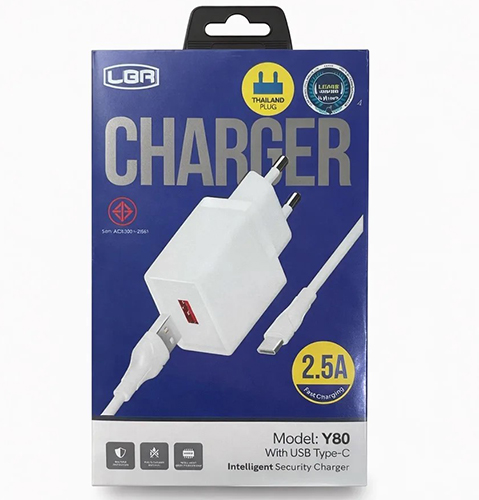 Блок питания сетевой LUOBR 1 USB 2.5A, с кабелем USB to Type-C, (Y80), белый