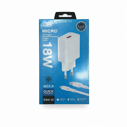 Блок питания сетевой LUOBR 1 USB 18W, с кабелем USB to micro USB, (Q36-A), белый