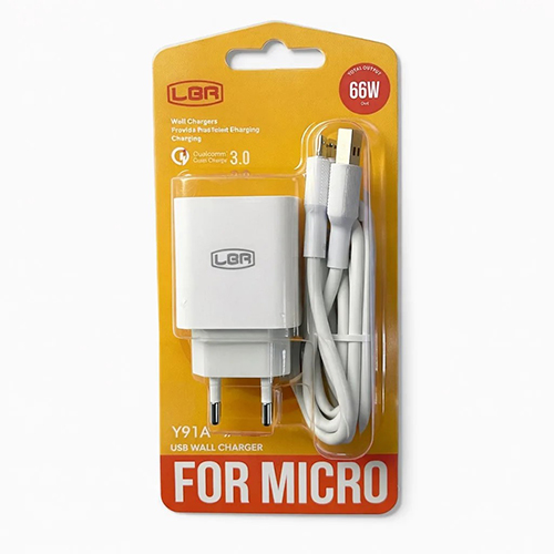 Блок питания сетевой LUOBR 1 USB 66W, с кабелем USB to micro USB, 1M, (Y91A), белый