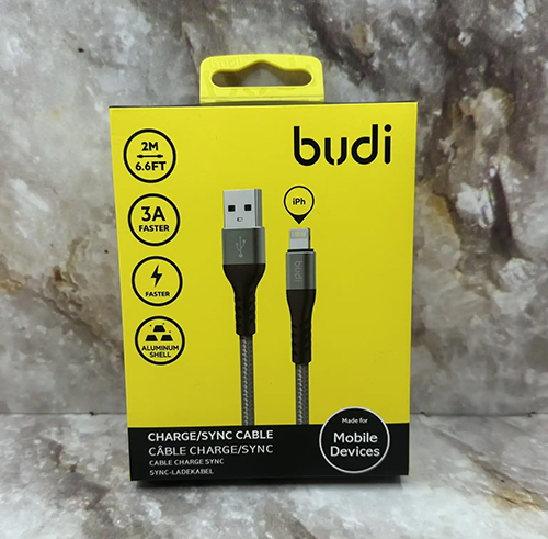 USB кабель Budi для Lightning, 3A, 1M, алюмин. корпус, нейлон (DC210L10B), черный