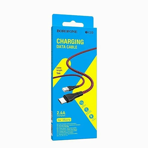 Кабель USB - micro USB Borofone BX39 1M, нейлоновая оплетка, 2.4A, красный