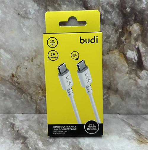 Type-C кабель Budi для Type-C, 3A, 1M, (DC011TT10W), белый