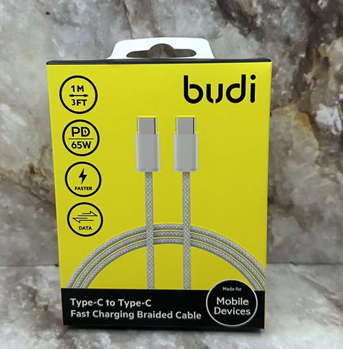 Type-C кабель Budi для Type-C, PD65W, 1M, быстрая зарядка, (DC252TT10W), белый