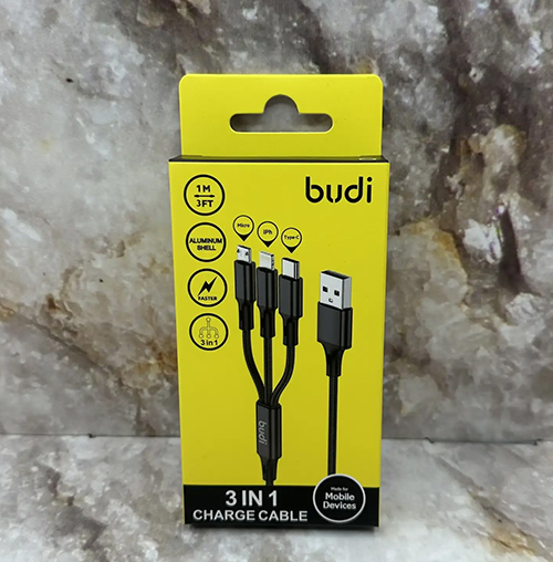 USB кабель Budi 3в1 для Type-C / Micro USB / Lightning, 1M, алюмин. корпус, (DC203A8B), черный