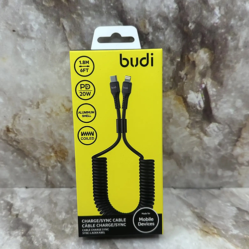 Type-C кабель Budi для Lightning, PD 20W, 1.8M, витой, алюмин. корпус, (DC210TLS18B), черный