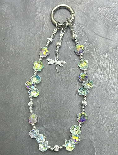 Обвес на сумку бусы прозрачные со стрекозой, №86