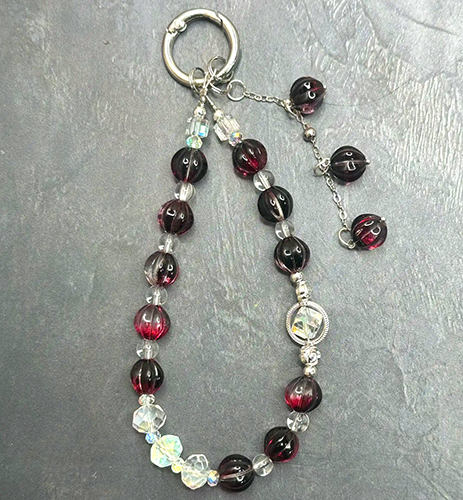 Обвес на сумку, бусы с камнем прозрачно-фиолетовые