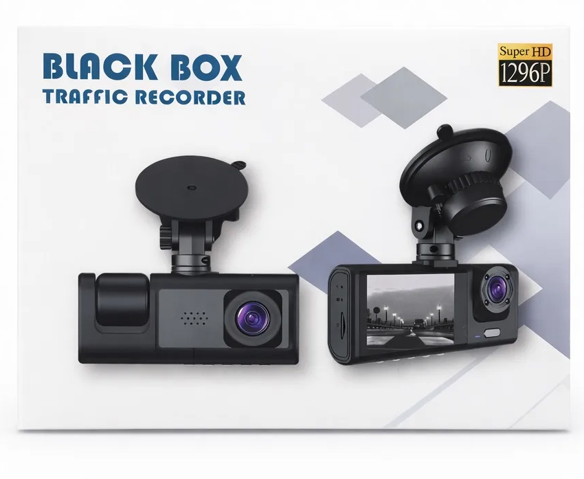 Видеорегистратор Black Box 3 камеры 1296P Super HD, датчик удара, ночной режим, черный