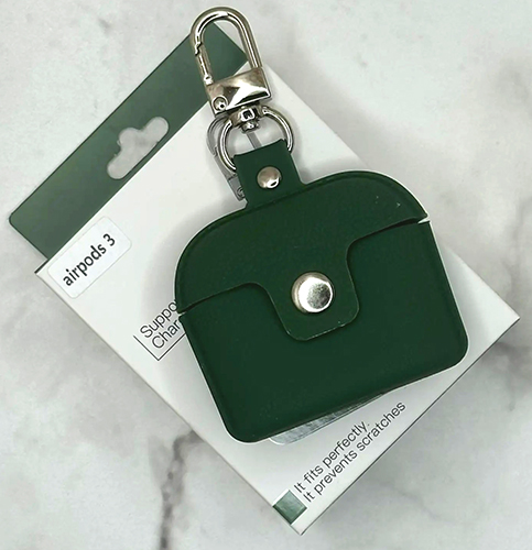 Силиконовый чехол для Air Pods 1/2 Earphone Case сумочка под кожу с карабином, тонкий, в упаковке, темно-зеленый