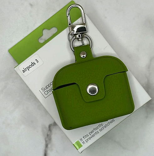 Силиконовый чехол для Air Pods 1/2 Earphone Case сумочка под кожу с карабином, тонкий, в упаковке, темно-зеленый
