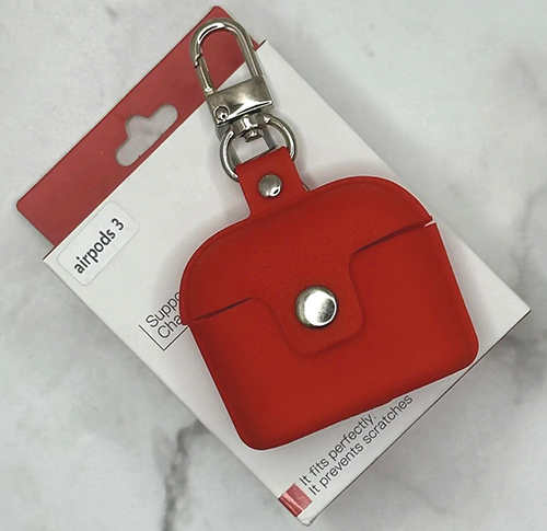 Силиконовый чехол для Air Pods 1/2 Earphone Case сумочка под кожу с карабином, тонкий, в упаковке, красный