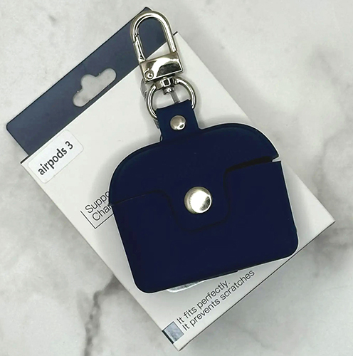 Силиконовый чехол для Air Pods 1/2 Earphone Case сумочка под кожу с карабином, тонкий, в упаковке, темно-синий