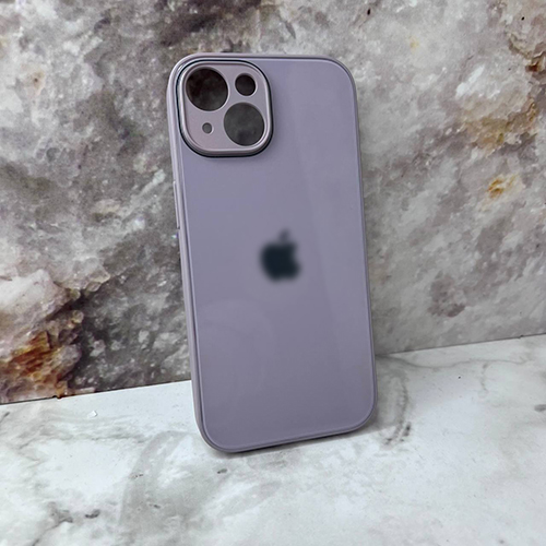 Задняя крышка Iphone 12 стеклянная, силиконовый борт, окантовка камеры и защитой, с лого, лиловая