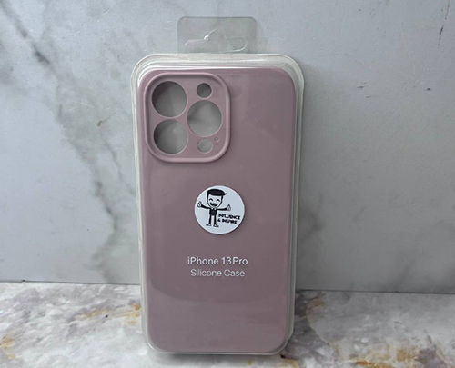 Силиконовый чехол Iphone 13 Pro "SILICONE CASE A" с логотипом и защитой камеры, в блистере, пудра