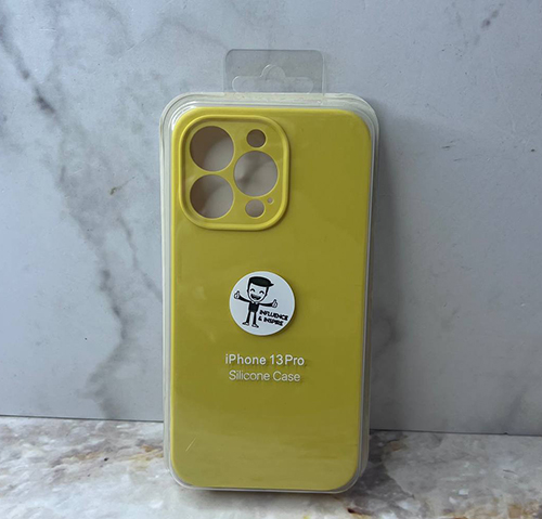 Силиконовый чехол Iphone 13 Pro "SILICONE CASE A" с логотипом и защитой камеры, в блистере, желтый