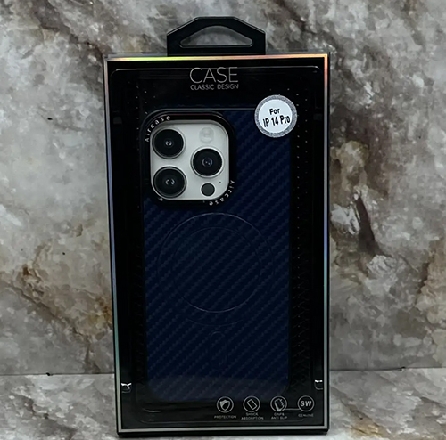 Задняя крышка Iphone 13 Pro AIRCASE под карбон, с MagSafe, в коробке, синяя