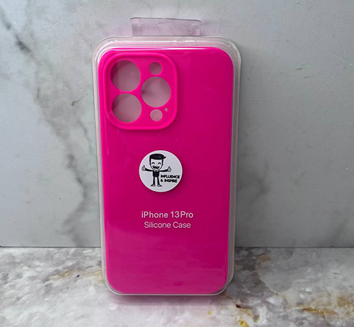 Силиконовый чехол Iphone 14 Pro "SILICONE CASE A" с логотипом и защитой камеры, в блистере, ярко-розовый