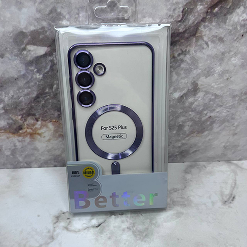 Силиконовый чехол Better Iphone 15 прозрачный в сеточку, с защитой камеры, magsafe, глянцевый борт, в упаковке, фиолетовый