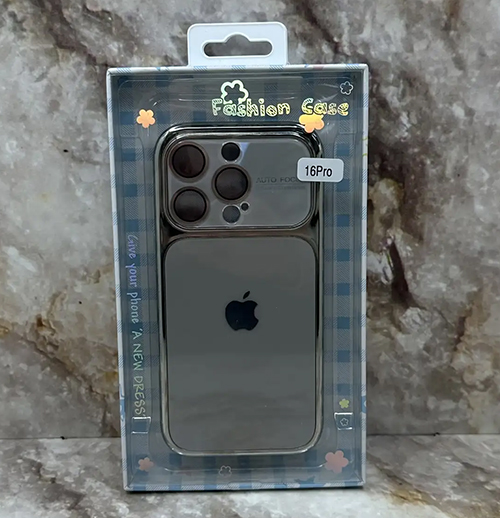 Задняя крышка Iphone 15 Pro AUTO FOCUS глянцевая, защита камеры, силиконовый борт, серая
