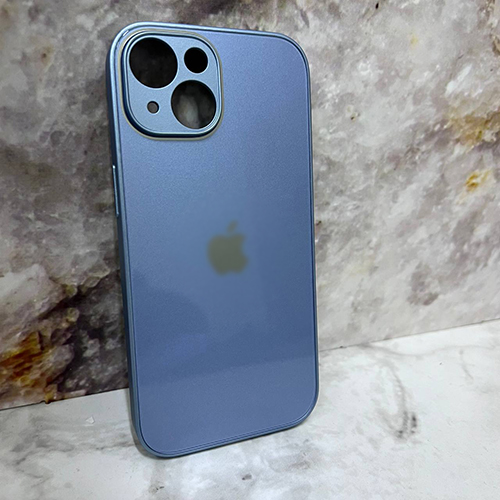 Задняя крышка Iphone 15 Pro стеклянная, силиконовый борт, окантовка камеры и защитой, с лого, голубая